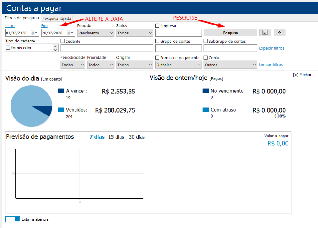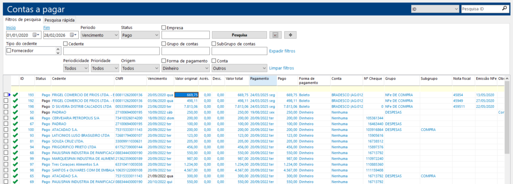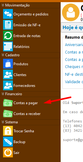 Esse módulo é utilizado pelo setor financeiro para ter o controle do que o estabelecimento está devendo para fornecedores, em questão de boletos de notas fiscais de compra, bem como controle de despesas como luz, água, internet, folha de pagamento e afins.