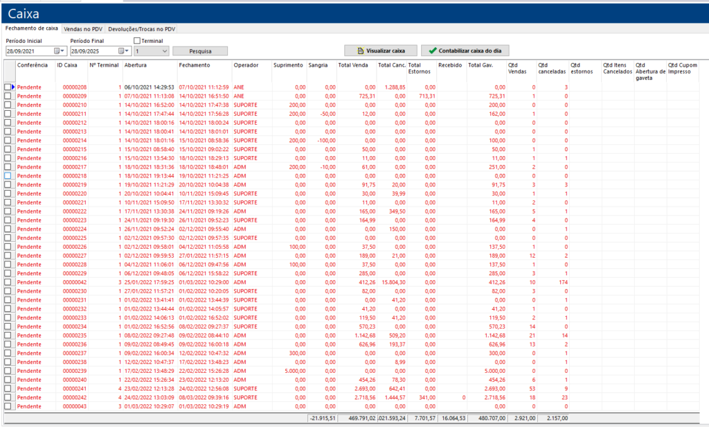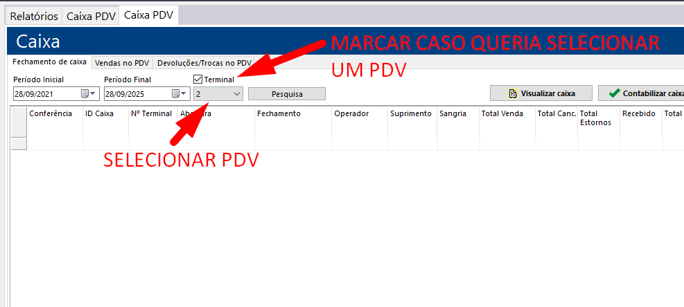 Como ver o fechamento de caixa do PDV