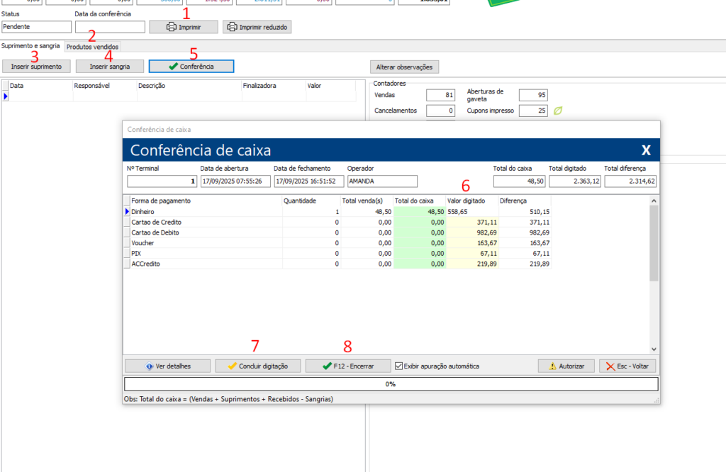 8 – Confirmar conferência de caixa.